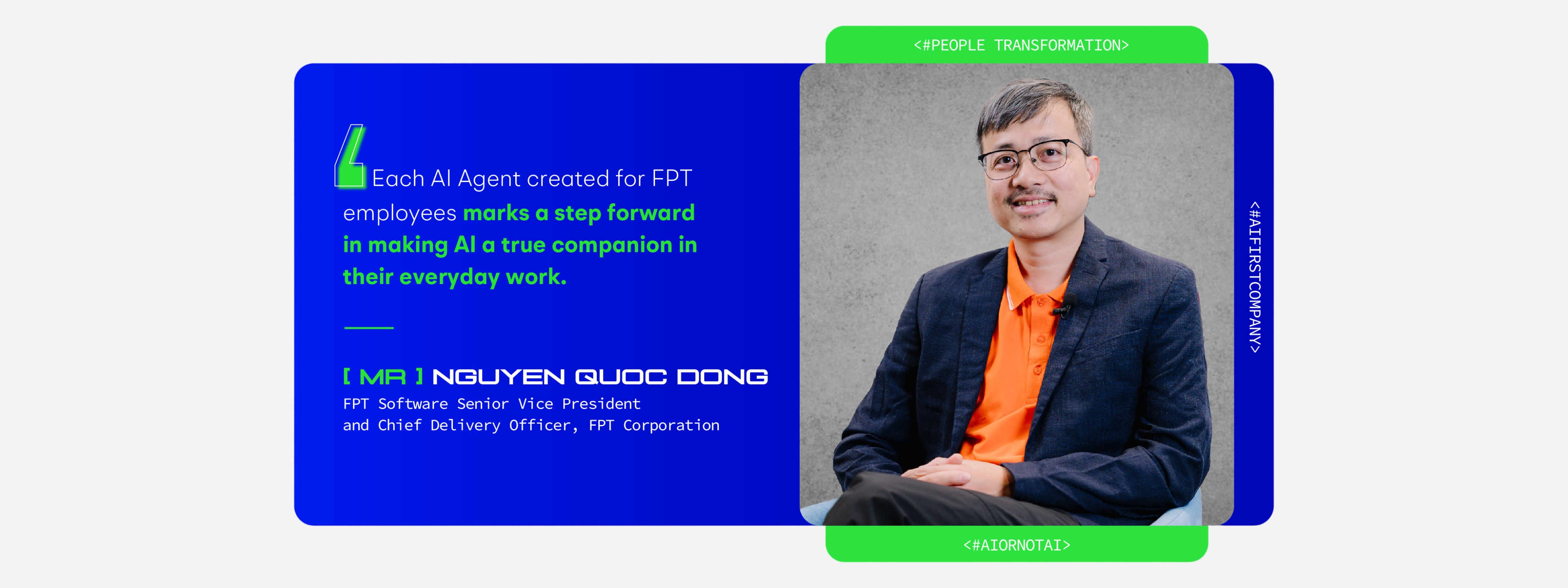 “Each AI Agent created for FPT employees marks a step forward in making AI a true companion in their everyday work. In our view, AI in the workplace isn’t a cold machine - it’s a silent partner that makes work lighter, decisions smarter, and people happier.” shared Mr. Nguyen Quoc Dong.