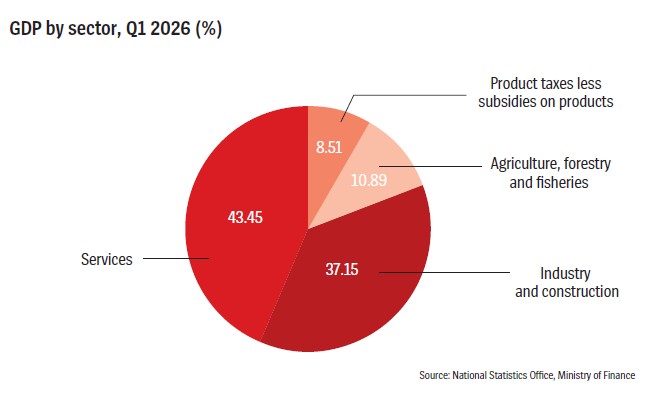 Growth in GDP has been recorded across sector groups. Industry and construction, the largest segment of the real economy, posted the fastest growth. Meanwhile, the services sector, which absorbs the largest share of labor and capital, also expanded at a rate above the overall average.