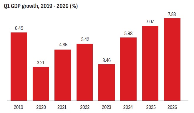 In terms of GDP, one key bright spot in recent years has been the pace of growth. GDP growth in the first quarter of 2026 ranked among the highest in the opening quarter for the past seven years.