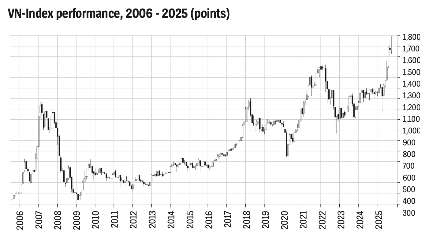 Vietnam’s stock market has been witnessing one of its most glorious moments in its 25-year history, with the VN-Index continually setting new records. The market is now entering a historic growth phase, driven by strong economic fundamentals, corporate resilience, and the prospect of an official upgrade to Emerging Market status.