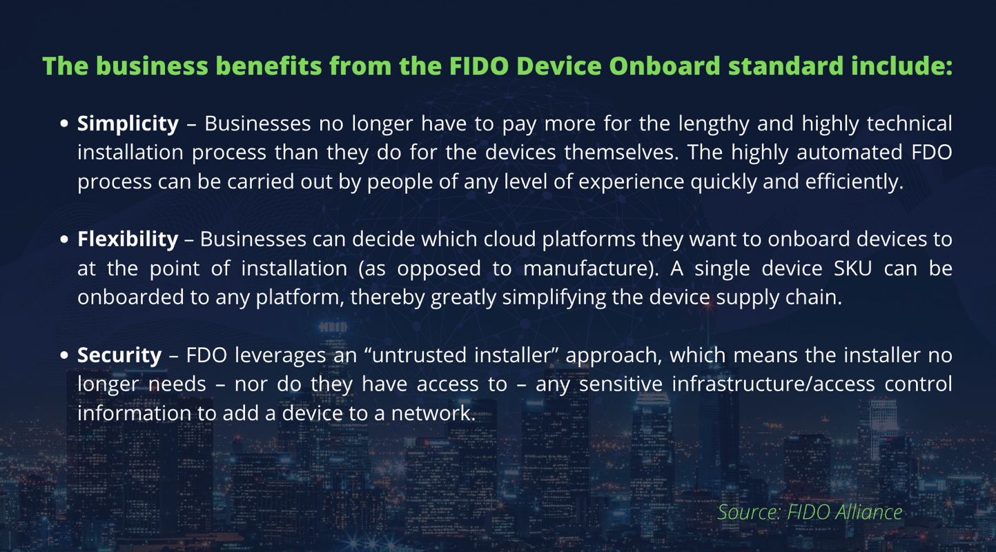 The solution utilizes the advantages of the FIDO Device Onboard (FDO), a unique protocol issued by the world’s Fast Identity Online Alliance (FIDO Alliance) to provide the IoT industry with a rapid and secure way to onboard any device to any device management system.