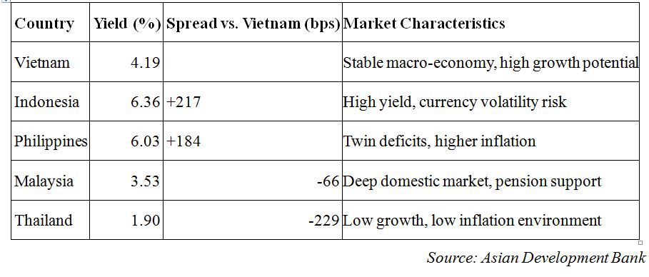 Comparison of Vietnam’s sovereign yields with regional peers